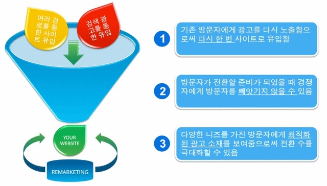 광고의 다양한 타겟팅 기법중 한가지로 보시면 됩니다. 처음에 사이트 방문자가 많지 않을때는 리마케팅